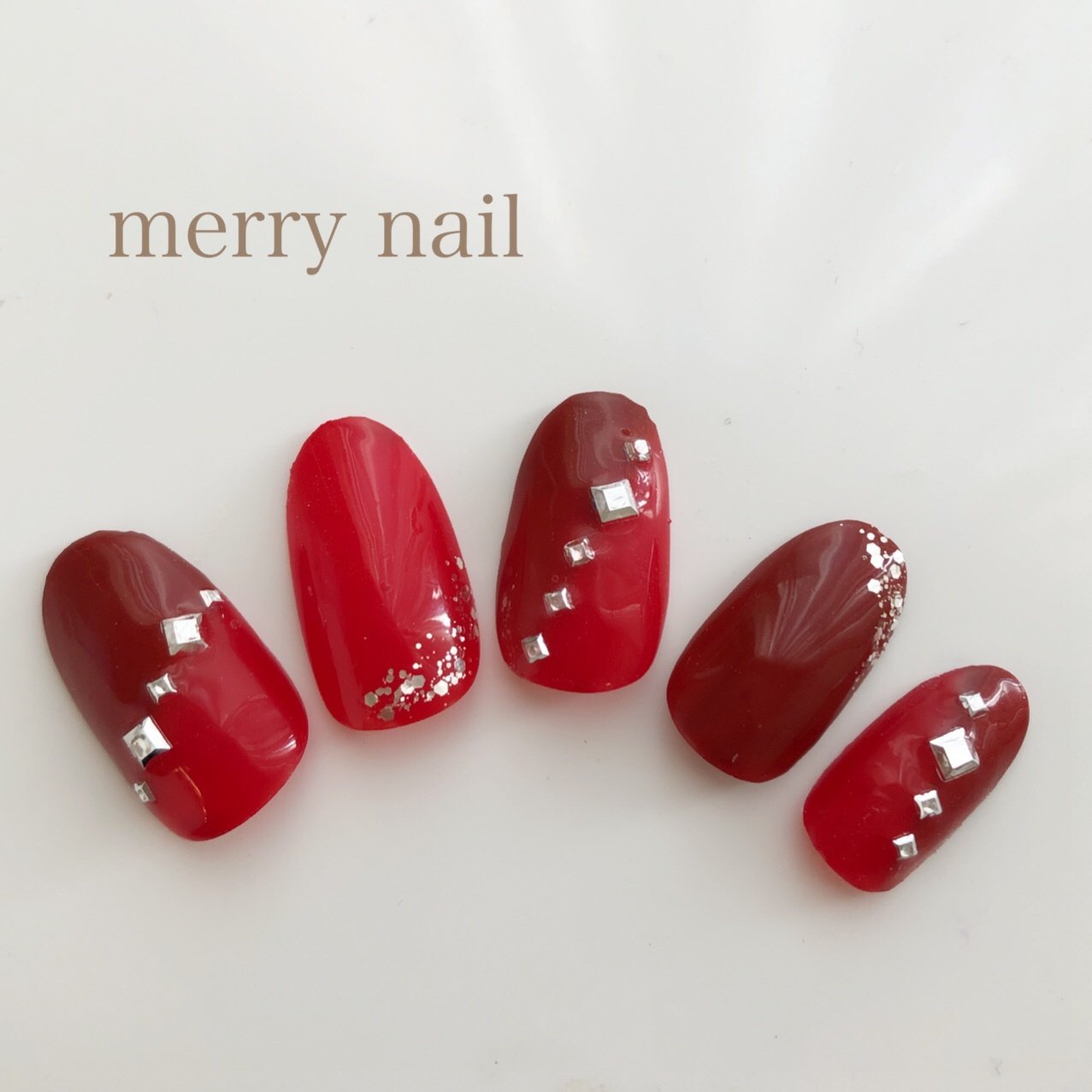 バイカラー レッド ボルドー ジェル ネイルチップ Merrynail メリーネイル のネイルデザイン No ネイルブック